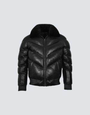 Men’s Black Sheepskin Leather Puffer Jacket – Warm & Stylish