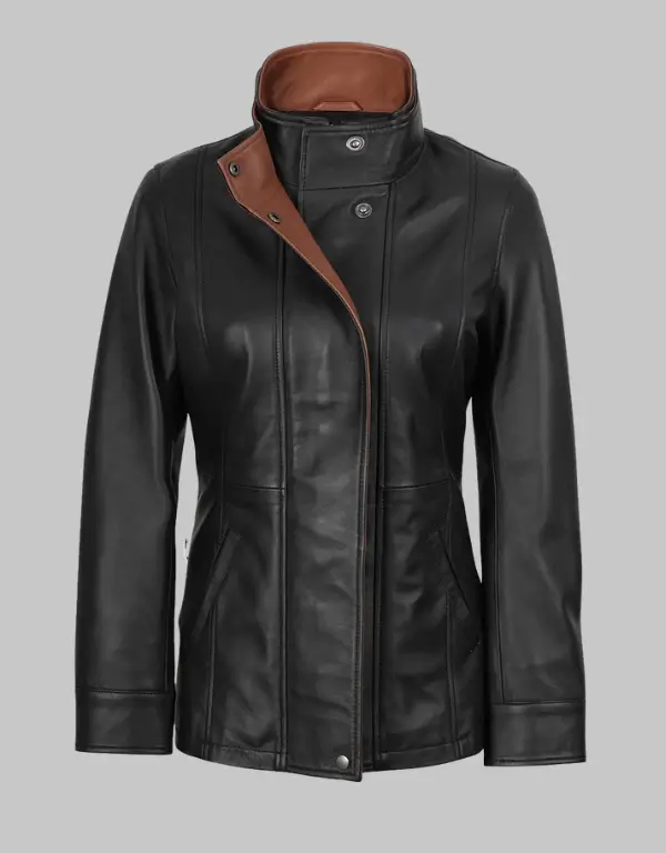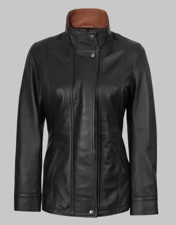 Made from 100% real lambskin leather, it offers a smooth, supple feel with lasting durability. The premium front zipper is paired with a snap-button flap for added security and style, while the subtle tailoring enhances your natural shape without compromising comfort.