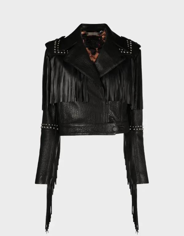 Philipp Plein Fringed Cropped Leather Jacket | Black