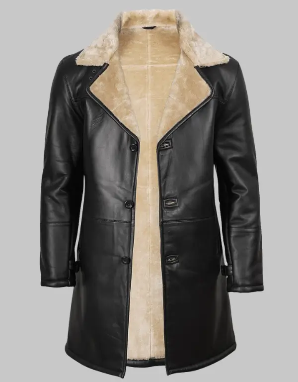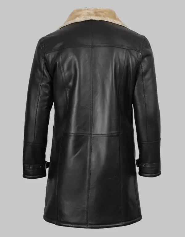 Men’s Black Leather Shearling Coat with Beige Faux Shearling | Turlock