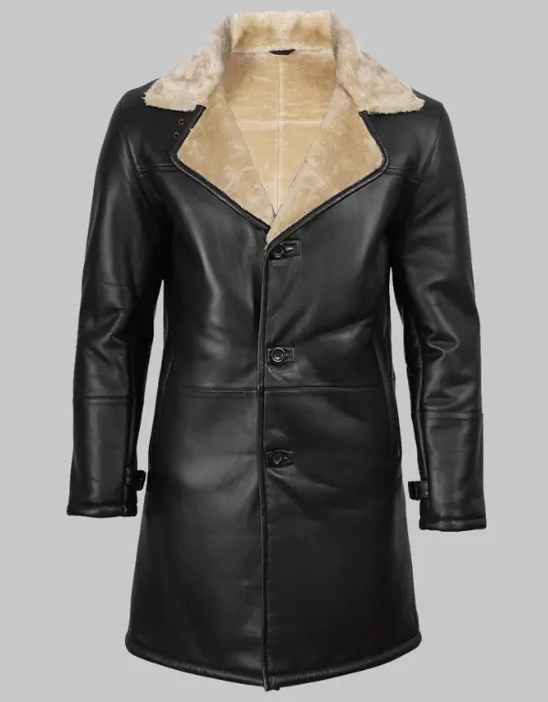 Stay warm, stylish, and effortlessly confident with the Turlock Men’s Black Leather Shearling Coat. Crafted from premium leather and lined with plush beige faux shearling, this coat brings together winter-ready comfort and refined design. Its tailored masculine fit, button-front closure, and soft shearling-lined collar make it perfect for both everyday wear and nights out. Whether you’re stepping into the cold or elevating your outfit, this coat delivers sophistication and reliable warmth all season long.