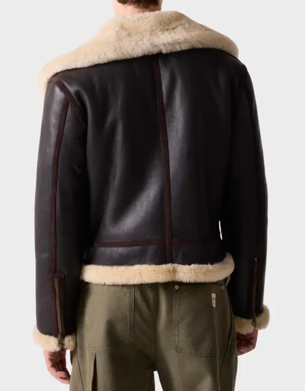 Men’s Black & White Sheepskin Aviator B3 Bomber Jacket