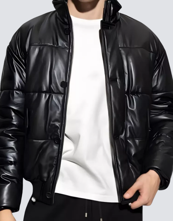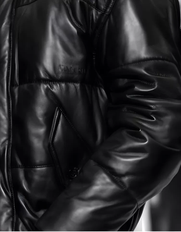 Men’s Black Sheepskin Leather Puffer Jacket – Warm & Stylish