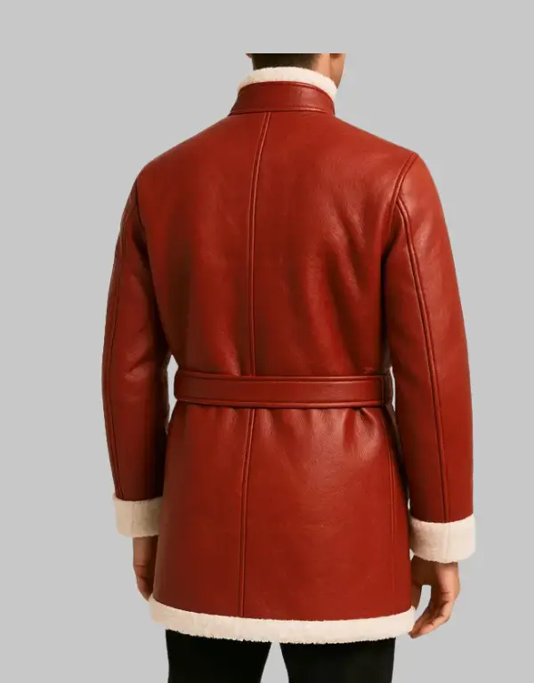 Celebrate the holiday season in style with the Men’s Fur Shearling Santa Red Leather Christmas Coat. Crafted from premium genuine or faux leather, this coat combines durability with comfort for cold-weather wear. The button-front closure and adjustable belt ensure a secure and tailored fit. Soft faux fur lining keeps you warm, while the white shearling trim on the collar, cuffs, pockets, and hem gives it the iconic Santa-inspired look. Two front patch pockets add functionality, perfect for keeping hands warm or carrying small essentials. Finished in a bold red with contrasting white details, this coat makes a festive statement for Christmas parties, winter outings, or themed events. A stylish, warm, and eye-catching winter wardrobe essential.