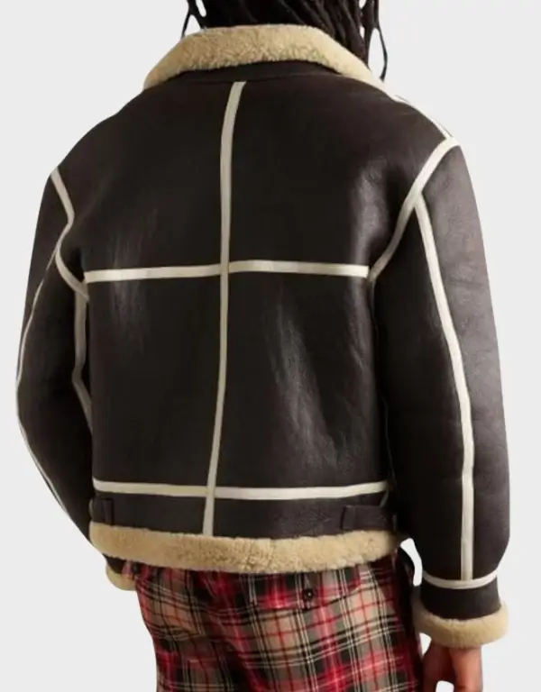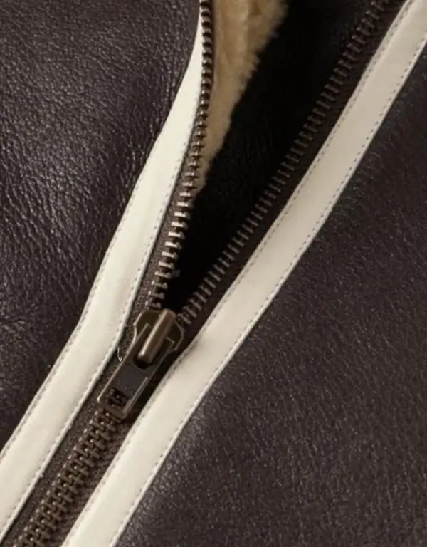 Men’s Dark Brown Leather-Trimmed Shearling Aviator Jacket