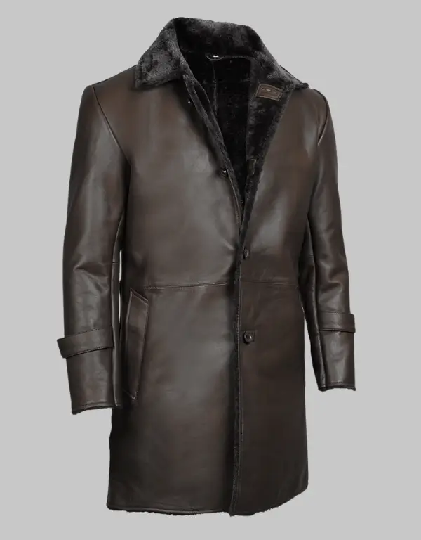 Men’s Dark Brown Real Leather Coat | Black Shearling Fur
