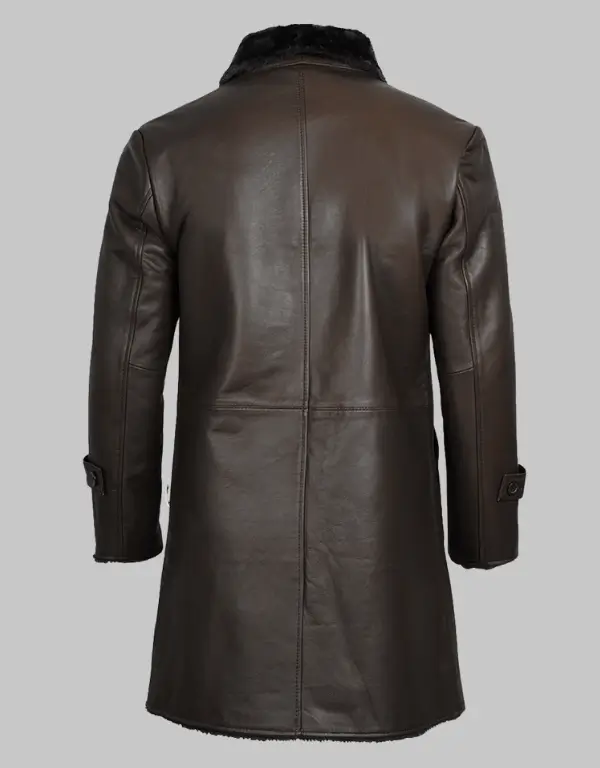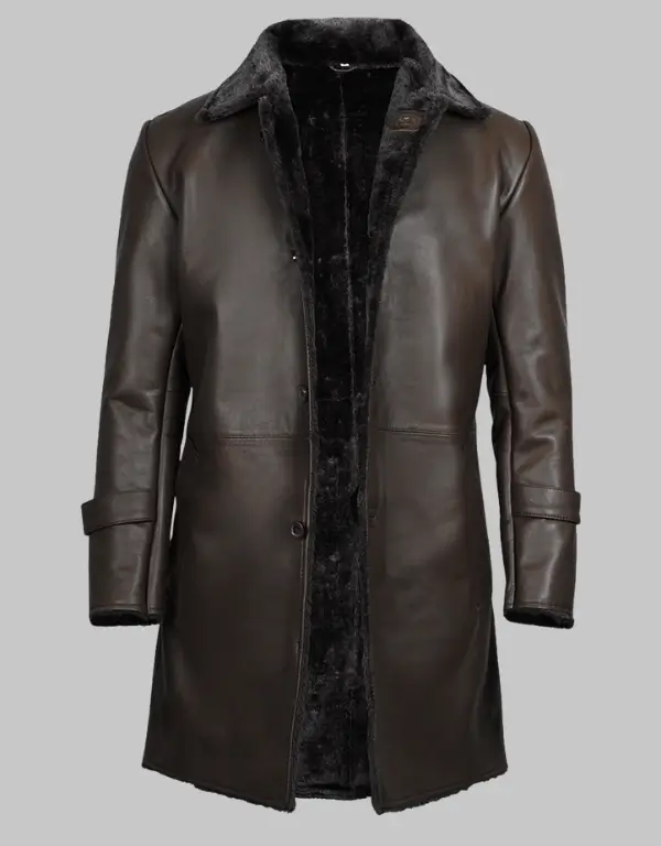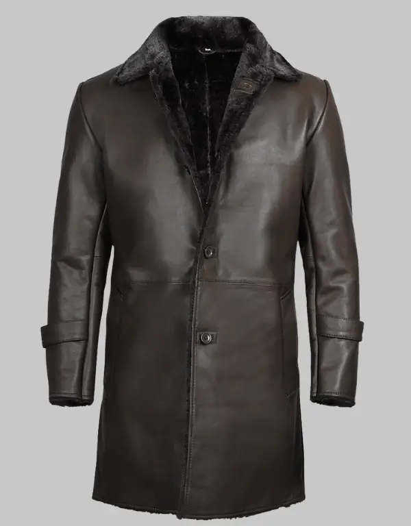 Elevate your winter wardrobe with the Men’s Dark Brown Real Leather Coat featuring a plush black shearling lining. Made from 100% genuine lambskin leather, this long coat blends timeless sophistication with exceptional warmth. The deep dark brown tone adds a refined touch, while the soft faux shearling interior keeps you insulated during cold-weather outings. Finished with a classic button-front closure and spacious pockets, it’s the perfect coat for everyday wear, holidays, and evening winter events.