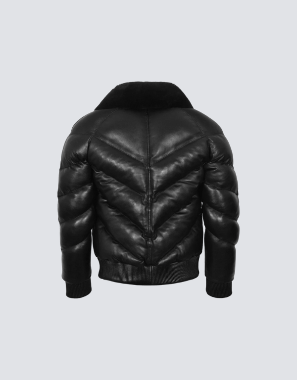 Men’s Black Sheepskin Leather Puffer Jacket – Warm & Stylish