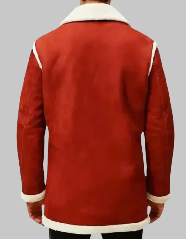 Celebrate the festive season with the Mens Santa Claus Red Christmas Leather Jacket, crafted from soft suede fabric for comfort and style. The warm shearling lining ensures cosy wear during chilly winter days, while the buttoned front and lapel collar offer a classic, timeless look. Full-length sleeves with shearling cuffs add extra warmth and detail, complemented by two practical front pockets and two inside pockets for convenience. The bold red colour perfectly embodies the Christmas spirit, making this jacket ideal for holiday gatherings, themed parties, or festive photos. Combining comfort, style, and a touch of holiday cheer, this jacket is a standout addition to any winter wardrobe.