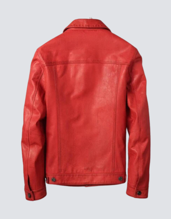 Celebrate the season with style in this Santa-inspired red leather jacket made for men who love bold outerwear. The striking red leather outer shell brings festive cheer, while the cushioned lining keeps you warm during chilly nights. A rugged zipper closure and rib-knit trim on the collar and cuffs give it a classic bomber feel. You’ll find two convenient pockets on the front for your essentials. Whether you’re dressing up for holiday gatherings or just want a standout leather jacket for winter, this piece offers both personality and practicality.