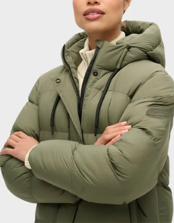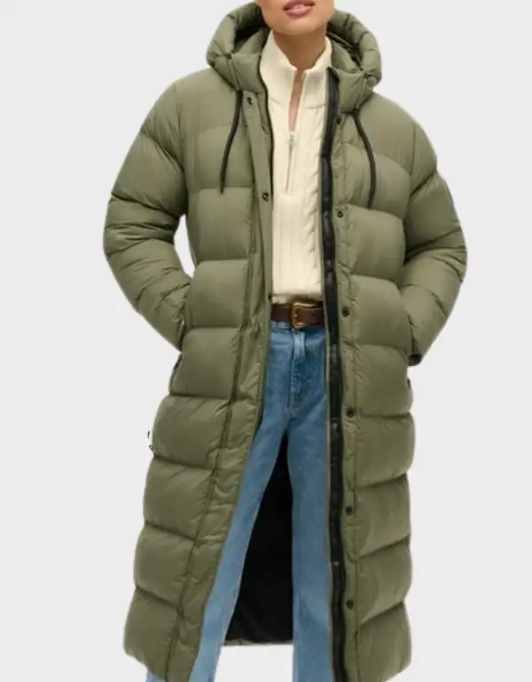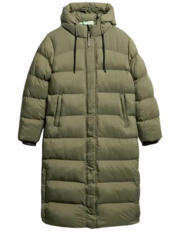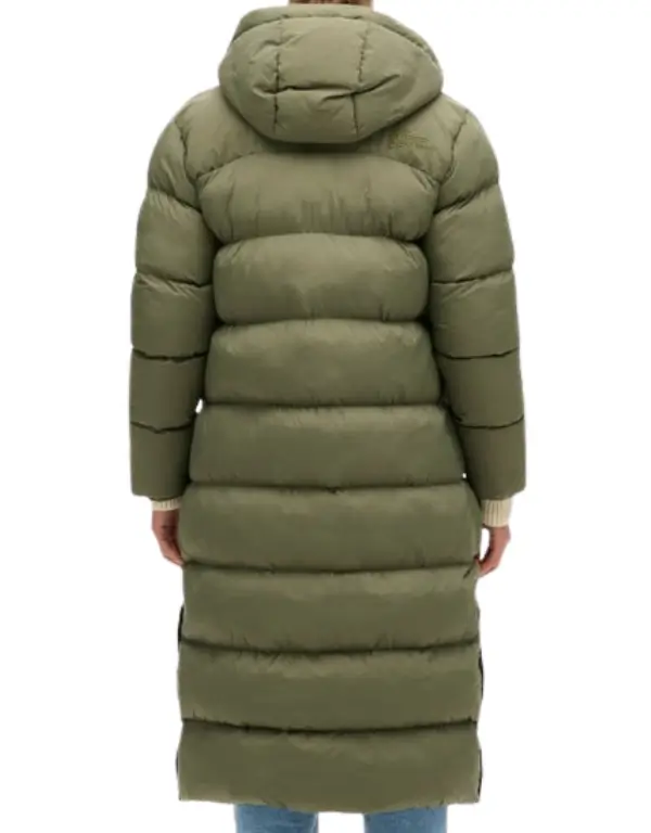 Superdry Rip Stop Longline Puffer Coat in Dusty Olive Green