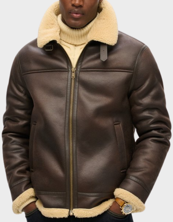 Superdry UK Brown Men’s Faux Shearling Aviator Jacket