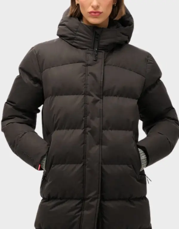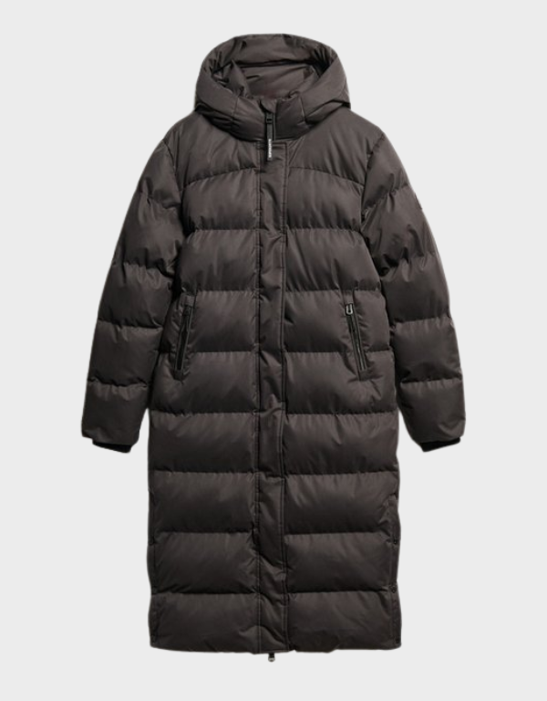 Superdry Women’s Microfibre Longline Puffer Coat in Black