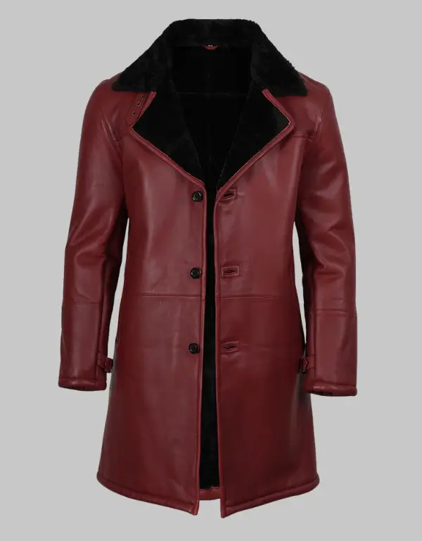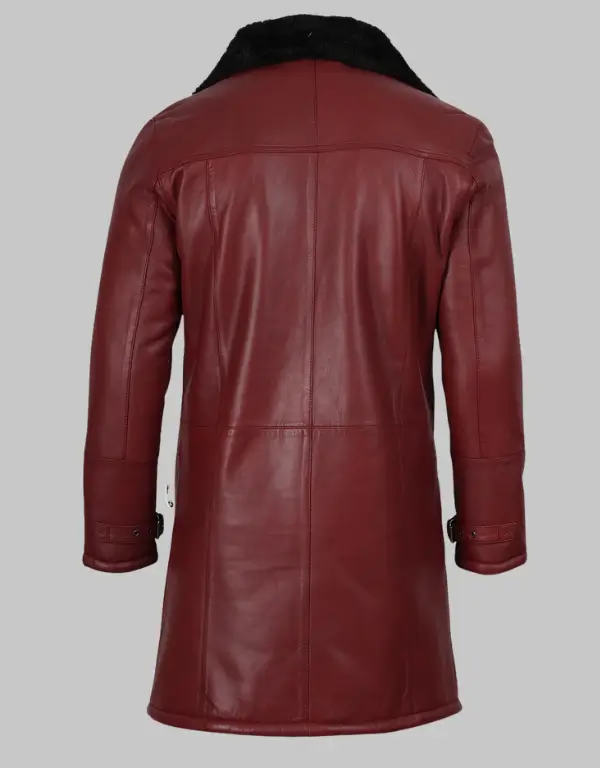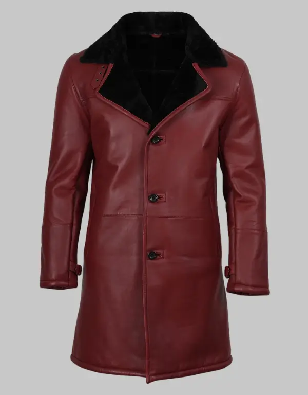Men’s Burgundy Leather with Black Shearling Long Coat
